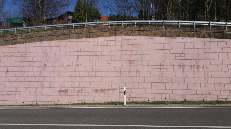 - 10m high and 100m long with micro piles back-anchored retaining wall
